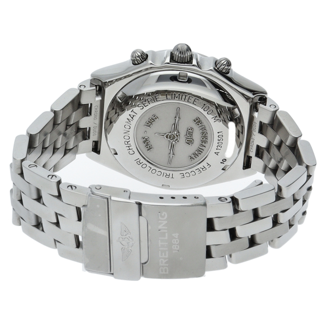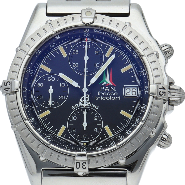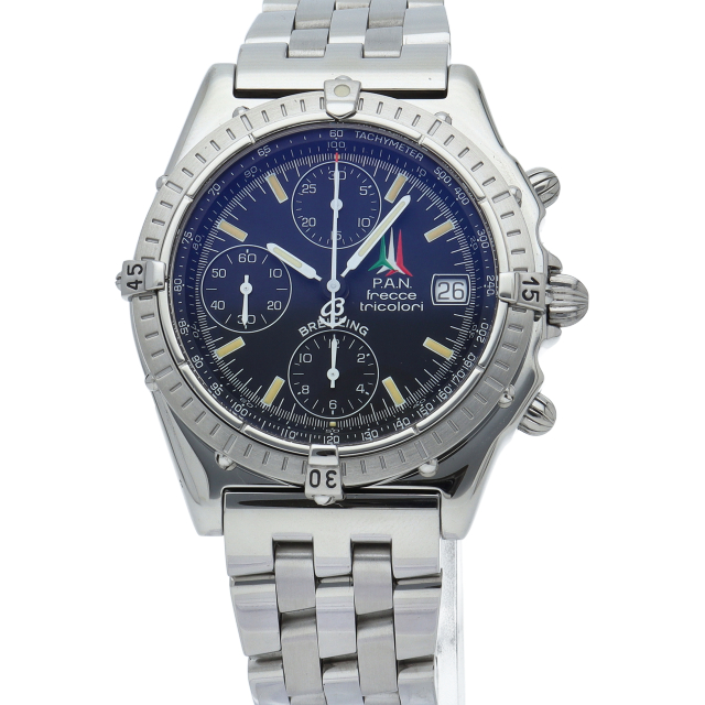 ブライトリングを代表する人気モデルであるクロノマット。クロノマット フレッチェ・トリコローリは、かの有名なイタリア空軍のために開発された1983年製クロノグラフへのトリビュートモデルです。A13050.1(A136BFTPA)