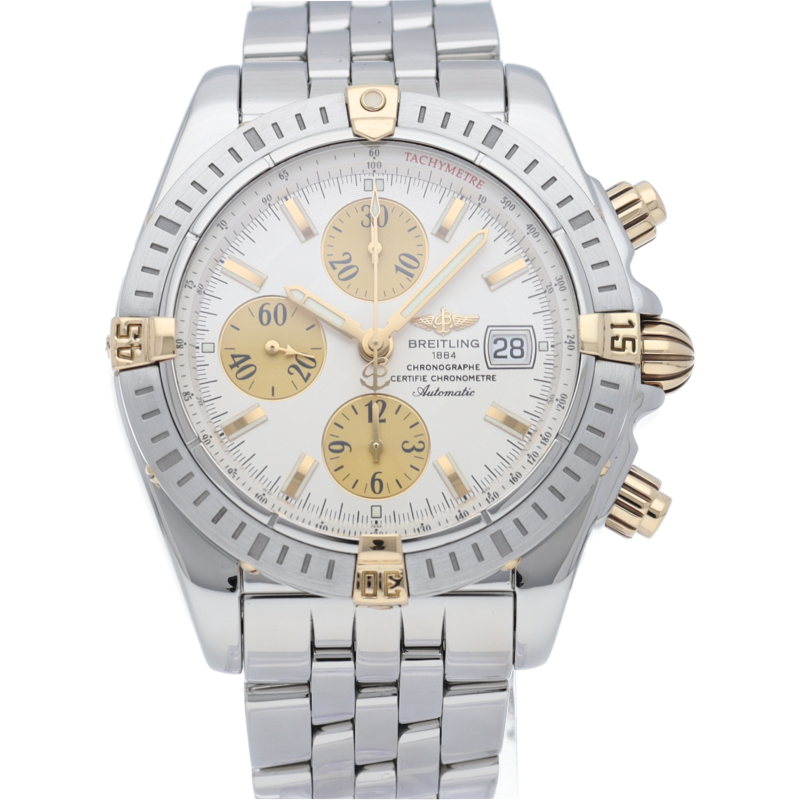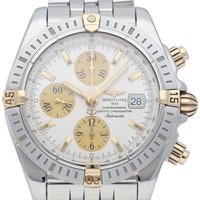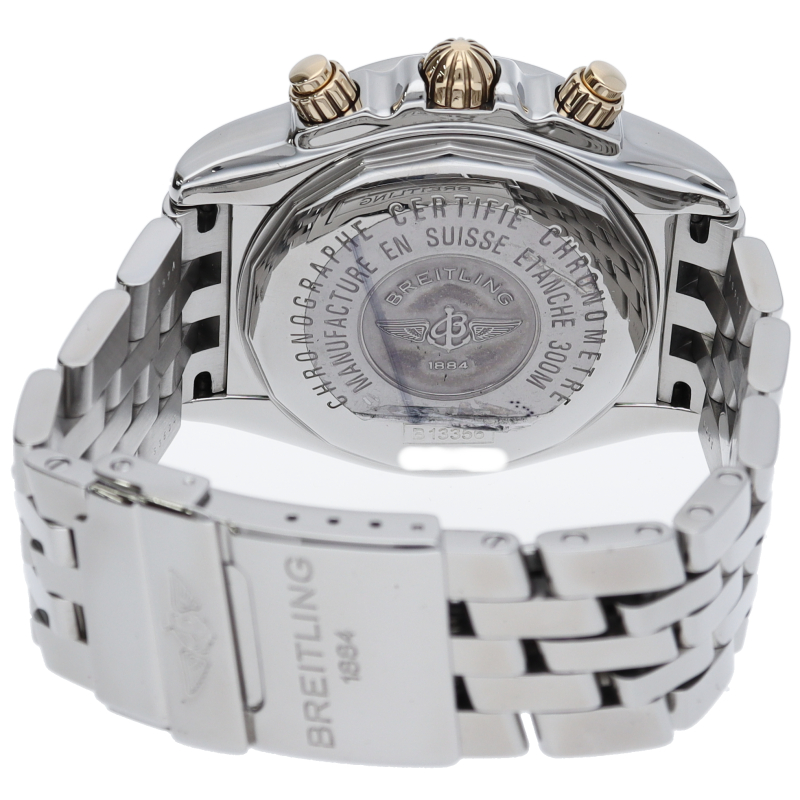 存在感のあるビッグケースにデイト表示・逆回転防止ベゼルを備えた、ステンレスとイエローゴールドのコンビが華やか。デザイン性と実用性を兼ね備えた1本です。B13356/B156G70PA。