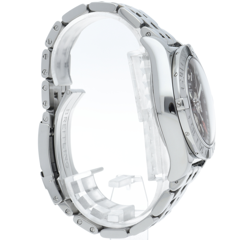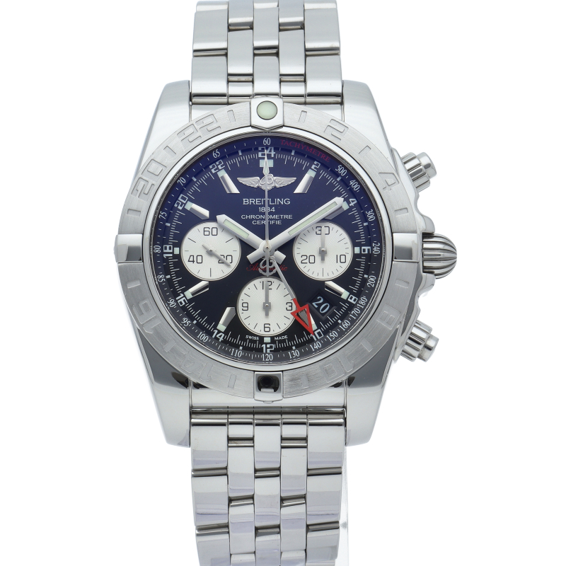 ブライトリングを代表するパイロットウォッチのフラッグシップがクロノマットです。こちらのGMTモデルは44ミリケースのボディに、ブライトリングが完全自社開発したキャリバーB04を搭載したトラベラーウォッチです。秒針を停止させず、ローカルタイムを調整することができる画期的なモデルです。AB042011/BB56。