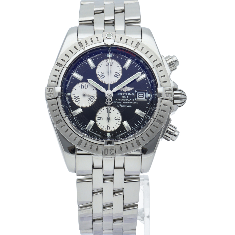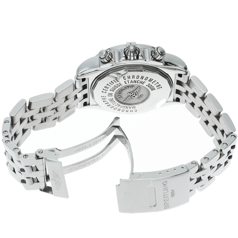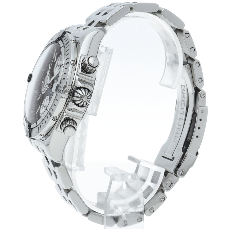ブライトリングの生産終了となった人気モデル。存在感のあるビッグケースにデイト表示・逆回転防止ベゼルを備えたデザイン性と実用性の兼ね備えた1本。A13356/A156B19PA。