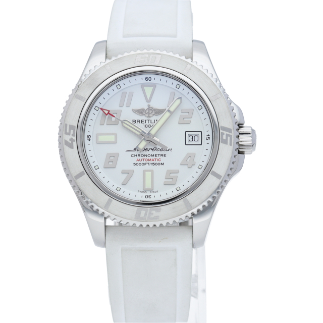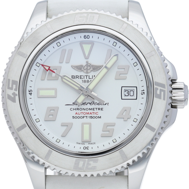 ブライトリングの本格派ダイバーズウォッチ「スーパーオーシャン42」。逆回転防止ベゼルにエスケープバルブ、1500Mの防水機能搭載で高級感の増した1本。別名「スーパーオーシャン2」。A17364(A17364A9/A763)。
