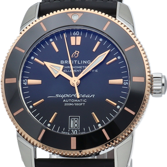 1950年代のオリジナルスーパーオーシャンにインスパイアされた「スーパーオーシャン ヘリテージ」。 アイコニックな三角針、セラミックリングを備えた逆回転防止ベゼルが特徴のエレガントなダイバーズウォッチです。ブライトリング自社開発製造キャリバーB20を搭載。UB2010(UB2010121B1S1)。