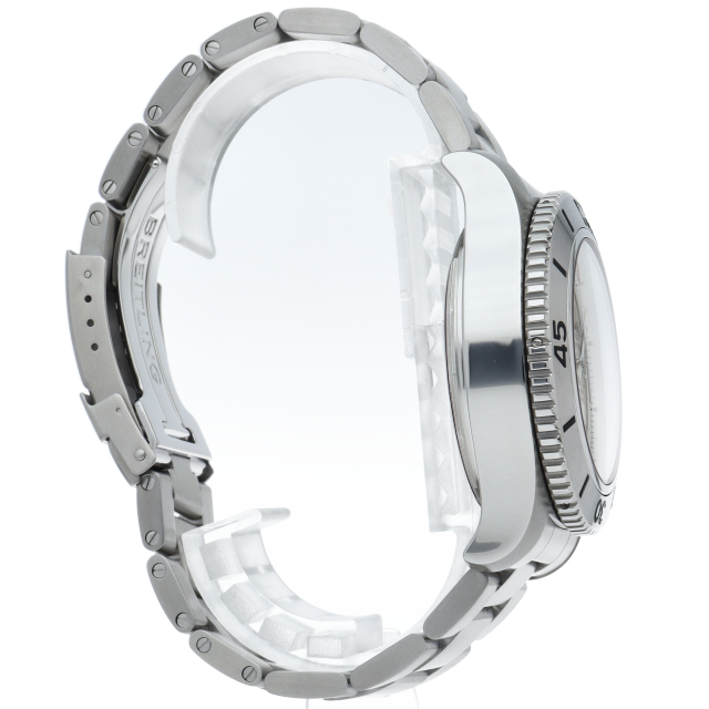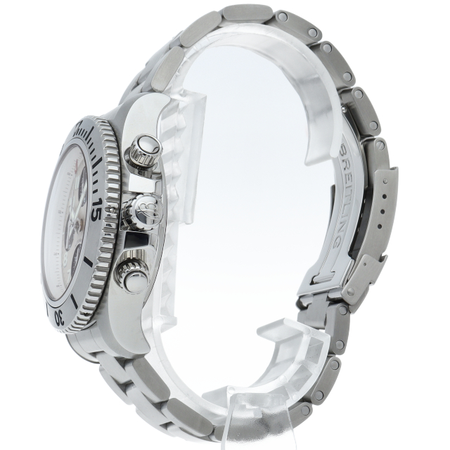 ブライトリングの本格派ダイバーズウォッチ「スーパーオーシャン」。オートエスケープバルブに、夜光塗料を施したインデックスと指針を採用。白文字盤にはスモールセコンドとアラビアインデックスが配置されています。A13341(A13341C3/G782)