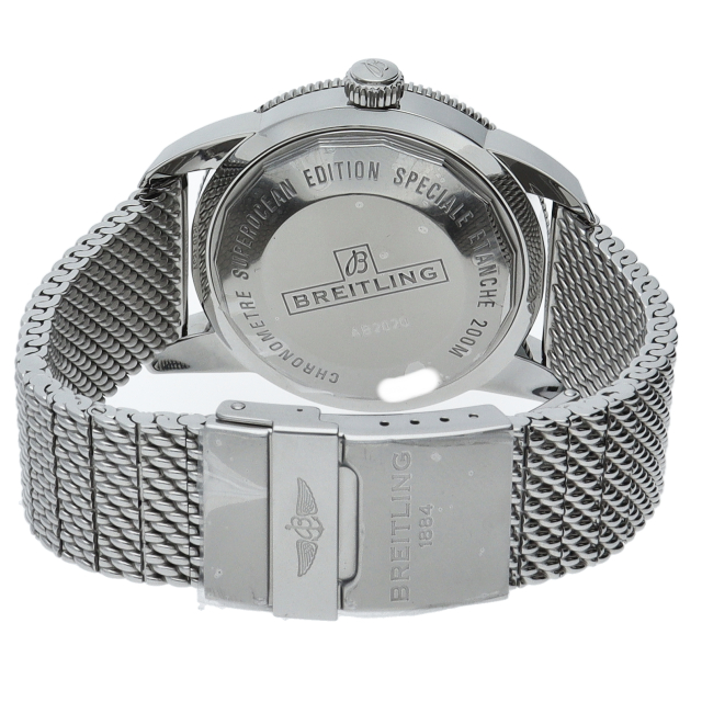 1957年に発表されたスーパーオーシャンヘリテージの伝説的デザインに進化を加えた46㎜のダイバーズウオッチは、最高の視認性を確保し、ハイテクセラミックベゼルと頑丈なメッシュブレスレットが装備されています。AB2020(AB2020121B1A1)。
