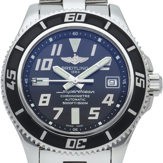 ブライトリングの本格派ダイバーズウォッチ「スーパーオーシャン42」。逆回転防止ベゼルにエスケープバルブ、1500Mの防水機能搭載で高級感の増した1本。別名「スーパーオーシャン2」。A17364(A187B28PRS)