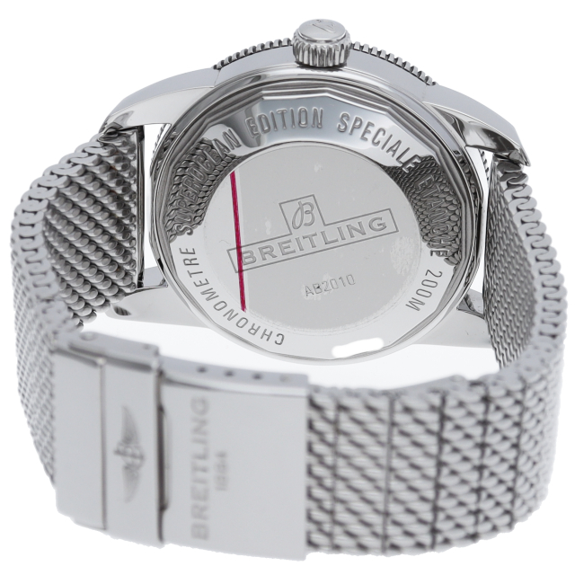 1957年に誕生し、ブライトリングの海洋分野における先駆者となったダイバーズ・ウォッチが、誕生から50年を経てリメイクされました。極めてシンプルでありながら、ブライトリングらしさを感じさせるデザインです。ベゼルプレートは耐傷性・耐久性に優れたハイテクセラミックベゼルを初採用し、時分針も前モデルよりも視認性の高い形状のものに変更されました。AB2010(AB2010161C1A1)