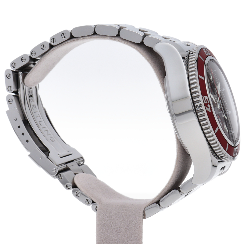 ブライトリングの本格派ダイバーズウォッチ「スーパーオーシャン」の限定モデル。特徴であるベゼルの色を黒から赤に変更。何気なくデイトが白から黒になり、ダイヤルとの統一感がアップし、ファッショナブルで華やかな一本に仕上げられています。A13341(A109R81PRS)。