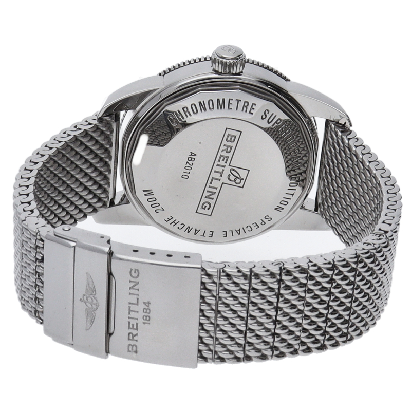 1957年に誕生し、ブライトリングの海洋分野における先駆者となったダイバーズ・ウォッチが、誕生から50年を経てリメイクされました。極めてシンプルでありながら、ブライトリングらしさを感じさせるデザインです。ベゼルプレートは耐傷性・耐久性に優れたハイテクセラミックベゼルを初採用し、時分針も前モデルよりも視認性の高い形状のものに変更されました。AB2010/AB2010161C1A1。