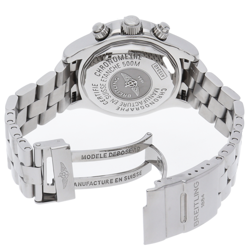 1957年から続くブライトリングを代表するダイバーズウォッチの「スーパーオーシャン」。ダイバーウォッチとして充分な500mもの防水性能を確保しながらも、ケースをスリムかつ軽量化したことにより、ダイビング以外にもオールマイティに使いやすくなっています。A13340/A111G49PRS。