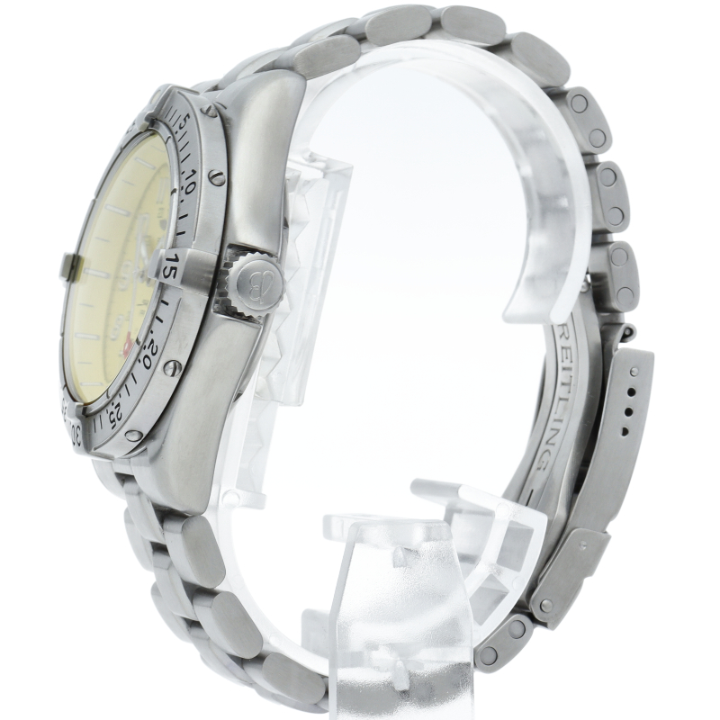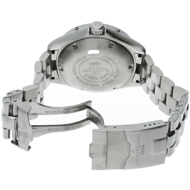 ブライトリングの本格派ダイバーズウォッチ「スーパーオーシャン」。逆回転防止ベゼルにエスケープバルブがついた、レトロな雰囲気を醸し出しつつもしっかりとした、ダイバーズウォッチでございます。A17045