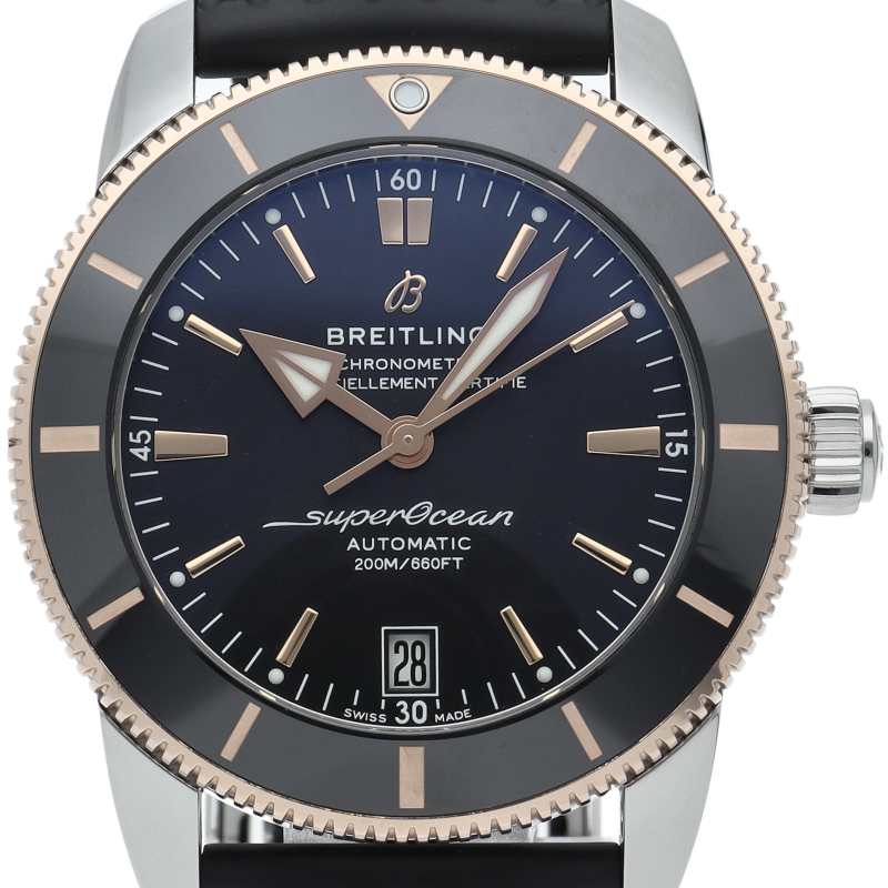 1950年代のオリジナルスーパーオーシャンにインスパイアされた「スーパーオーシャン ヘリテージ」。 アイコニックな三角針、セラミックリングを備えた逆回転防止ベゼルが特徴のエレガントなダイバーズウォッチです。ブライトリング自社開発製造キャリバーB20を搭載。UB2010/UB2010121B1S1。