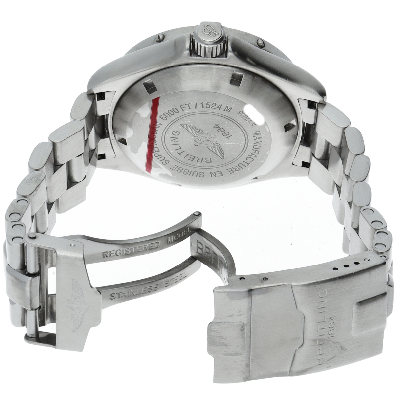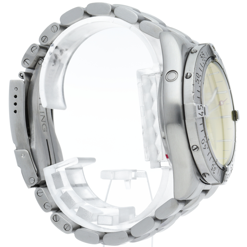 ブライトリングの本格派ダイバーズウォッチ「スーパーオーシャン」。逆回転防止ベゼルにエスケープバルブがついた、レトロな雰囲気を醸し出しつつもしっかりとした、ダイバーズウォッチでございます。A17045