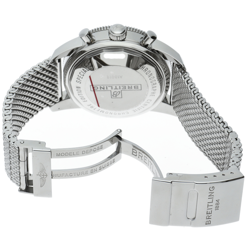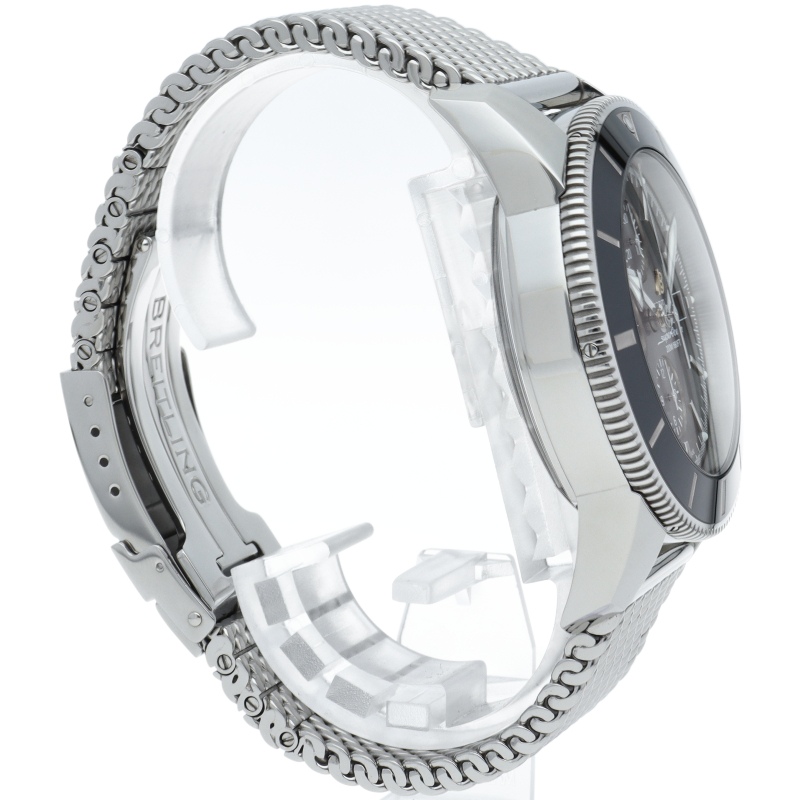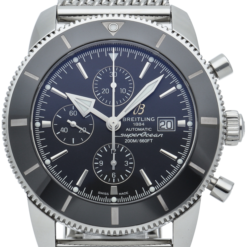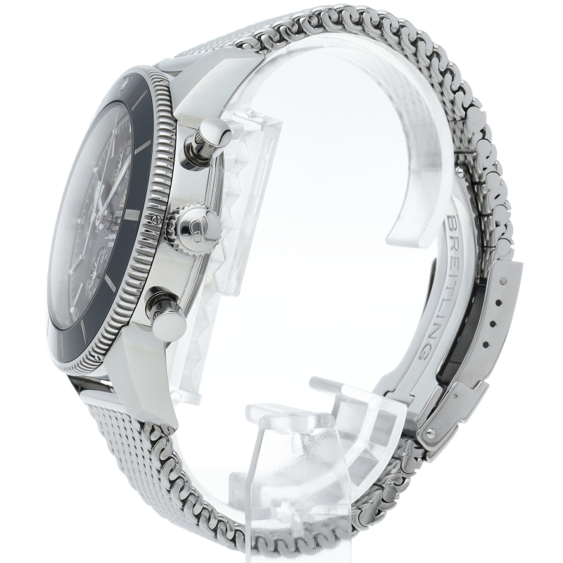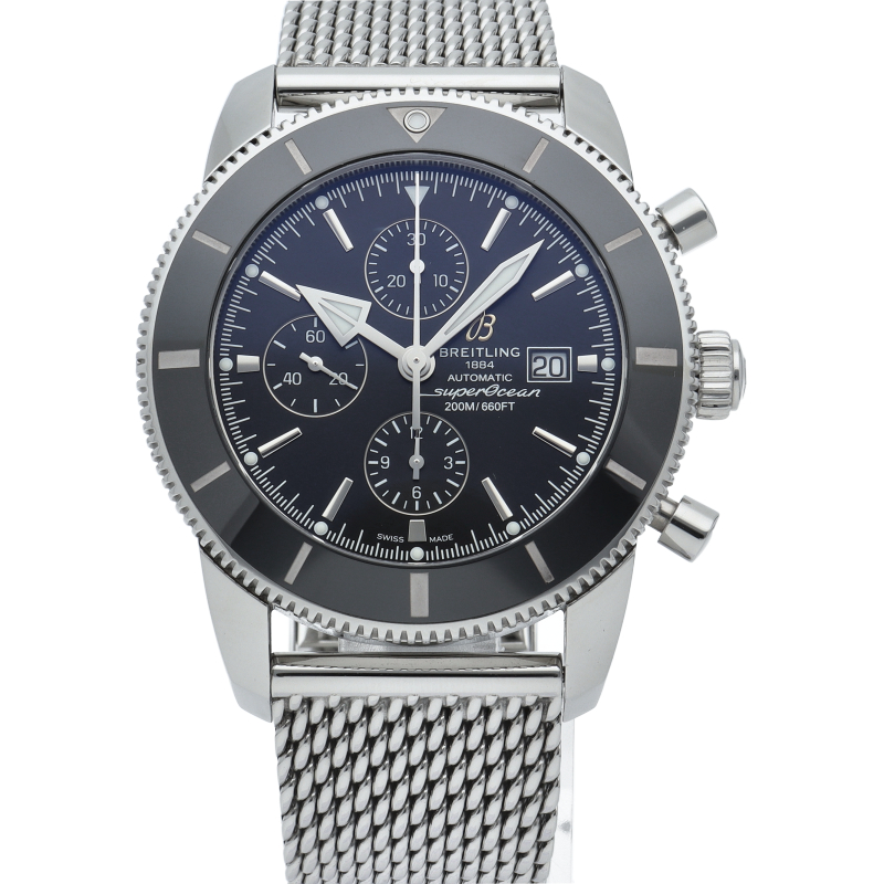 1957年に発表されたスーパーオーシャンヘリテージの伝説的デザインに進化を加えたモデル。ブラックカラーの映えるセラミックベゼルや頑丈なメッシュブレスレットなどデザイン性の高さにも注目を集めています。A13312/A1331212/BF78。
