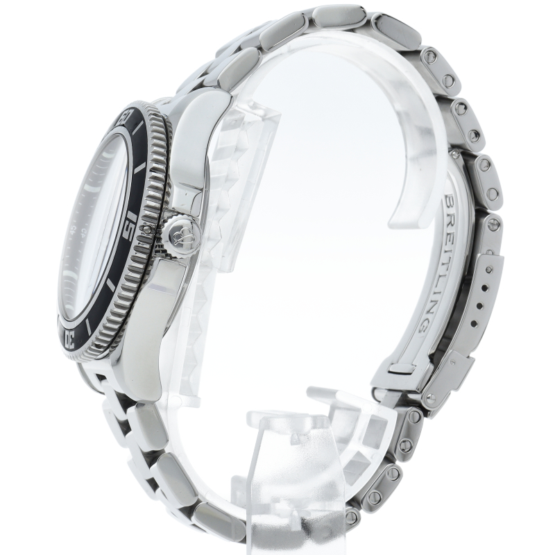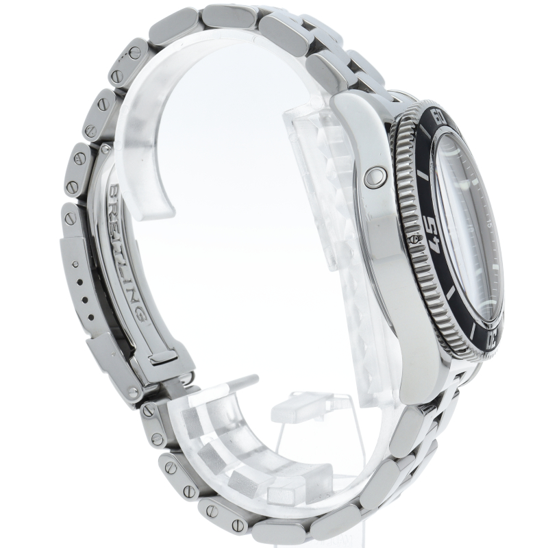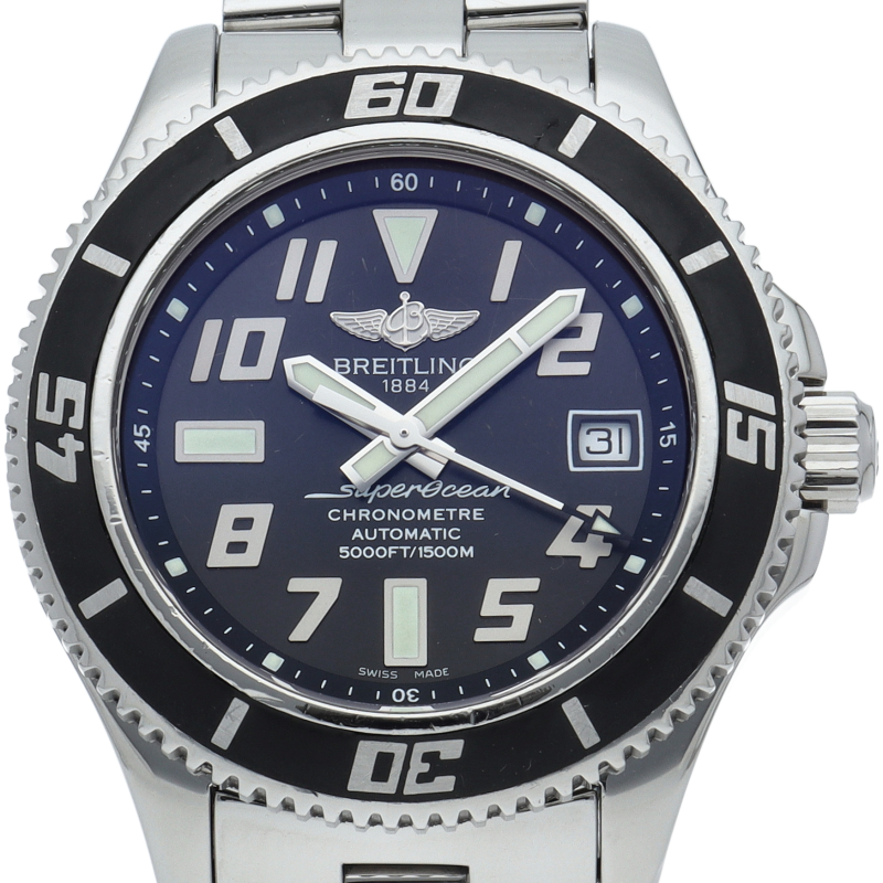 ブライトリングの本格派ダイバーズウォッチ「スーパーオーシャン42」。逆回転防止ベゼルにエスケープバルブ、1500Mの防水機能搭載で高級感の増した1本。別名「スーパーオーシャン2」。A17364/A187B28PRS。
