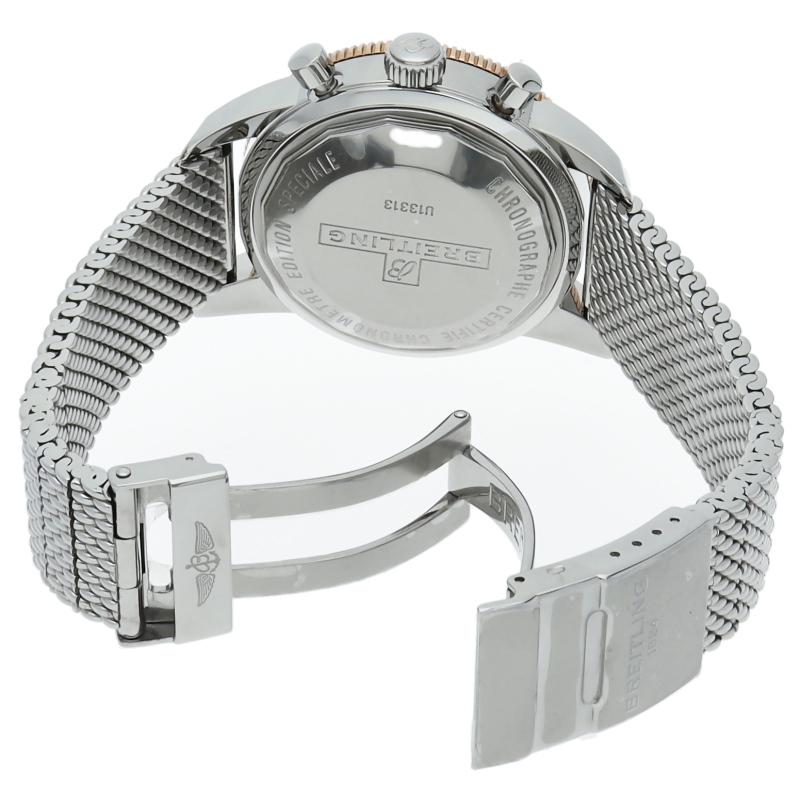 スーパーオーシャンヘリテージIIクロノグラフ44はその歴史的モデルへのオマージュとしてオリジナルモデルのデザインを取り入れながら復刻された200m防水のダイビングウォッチです。ブラック文字盤にはアラビアインデックスが配置され3時位置には日付表示、実用性も文句無しの仕上がりです。ムーブメントには公認クロノメーターのブライトリングキャリバー13を搭載。