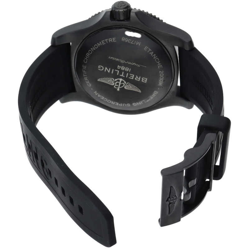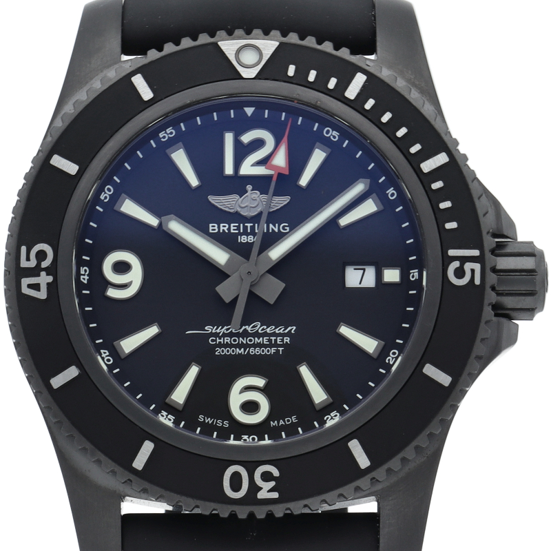 大胆な大型のブラックスチールケースを備えるスーパーオーシャン オートマチック 46。46mmの大型ケースは、存在感があり、耐久性にも優れています。