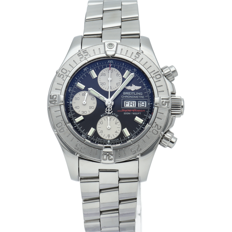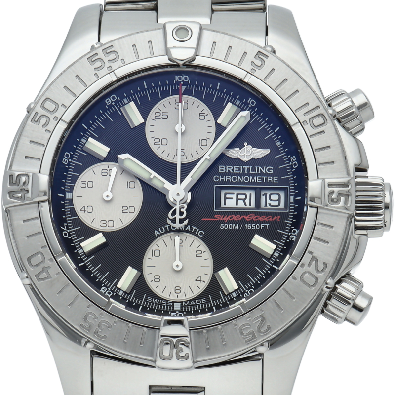 ブライトリングの本格派ダイバーズウォッチ「スーパーオーシャン」にクロノグラフ・デイデイト表示等が搭載された多機能モデルです。A13340/A111B00PRS。