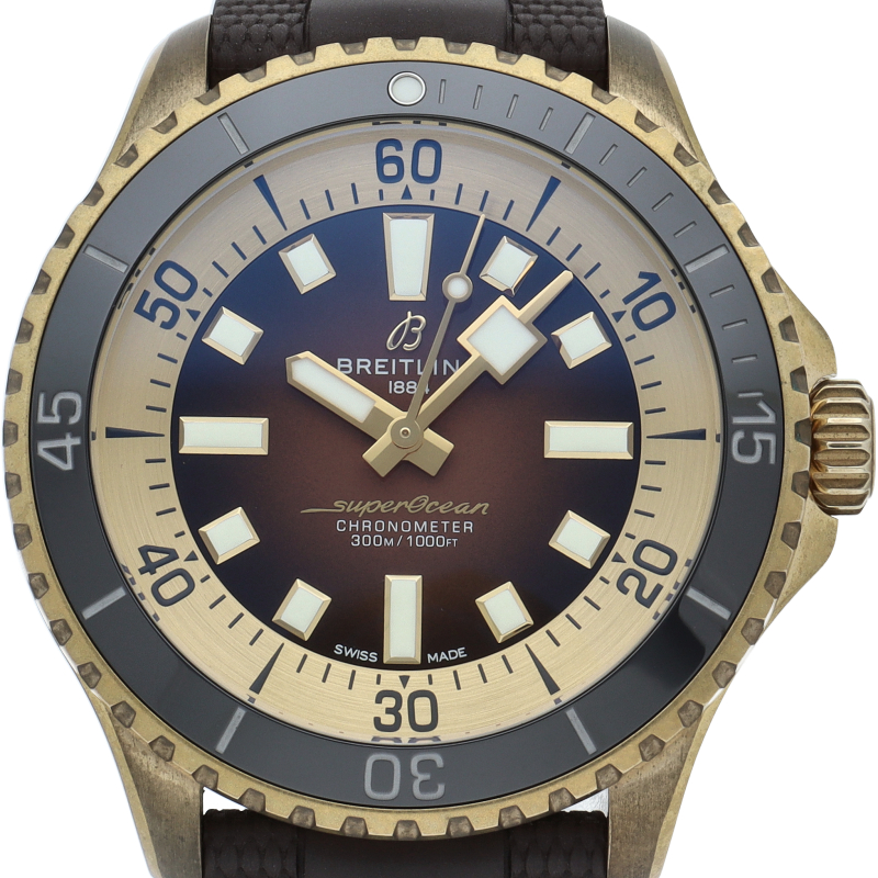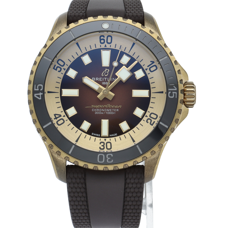 ブライトリングを代表するダイバーズ コレクション、「スーパーオーシャン 」。こちらのモデルは蓄光塗料を塗布した分厚いインデックス、四角い針、コントラストが際立つダイヤルリングはそのままに、視認性を最大限に高めています。