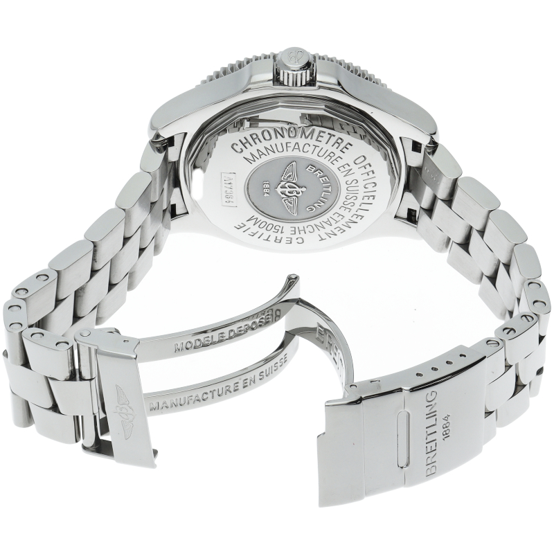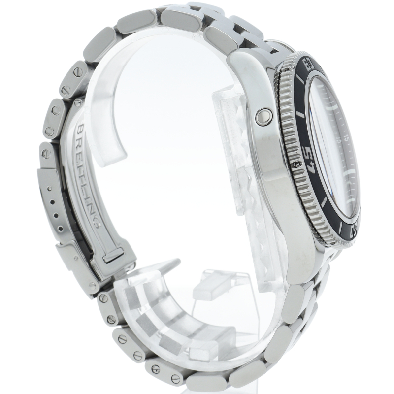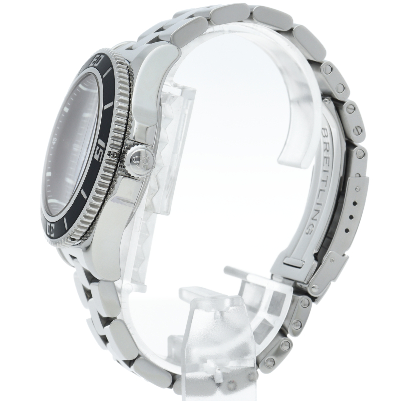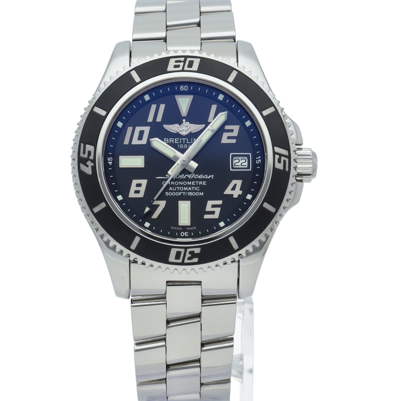 ブライトリングの本格派ダイバーズウォッチ「スーパーオーシャン42」。逆回転防止ベゼルにエスケープバルブ、1500Mの防水機能搭載で高級感の増した1本。別名「スーパーオーシャン2」。A17364/A187B28PRS。