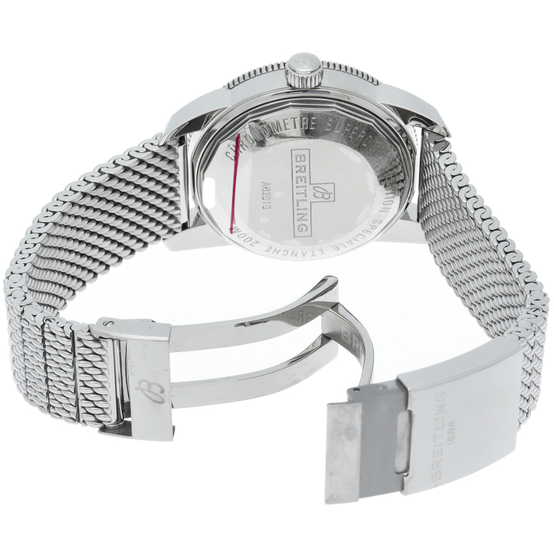 1957年に誕生し、ブライトリングの海洋分野における先駆者となったダイバーズ・ウォッチが、誕生から50年を経てリメイクされました。極めてシンプルでありながら、ブライトリングらしさを感じさせるデザインです。ベゼルプレートは耐傷性・耐久性に優れたハイテクセラミックベゼルを初採用し、時分針も前モデルよりも視認性の高い形状のものに変更されました。AB2010/AB2010121B1A1。