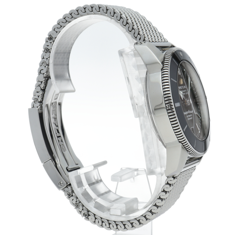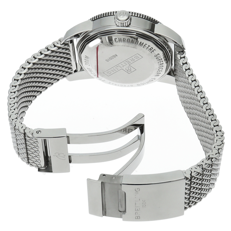 ブライトリングの海洋分野における先駆者となったダイバーズ・ウォッチが、誕生から50年を経てリメイクされました。ベゼルプレートは耐傷性・耐久性に優れたハイテクセラミックベゼルを初採用し、時分針も前モデルよりも視認性の高い形状のものに変更されました。キャリバーは、チューダーキャリバーMT5612をベースにしたCOSC公認クロノメーターのブライトリング・マニュファクチュール・キャリバーB20を搭載。AB2010/AB2010121L1A1。