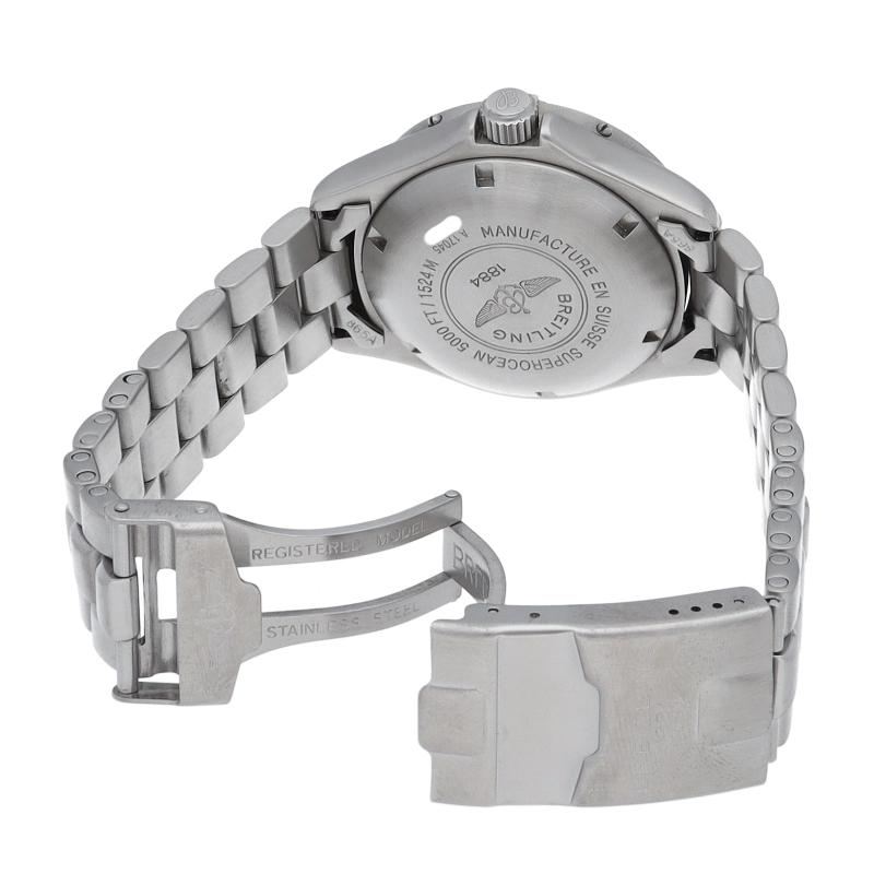 ブライトリングの本格派ダイバーズウォッチ「スーパーオーシャン」。逆回転防止ベゼルにエスケープバルブがついた、レトロな雰囲気を醸し出しつつもしっかりとした、ダイバーズウォッチでございます。A17045/A175I01PFA。