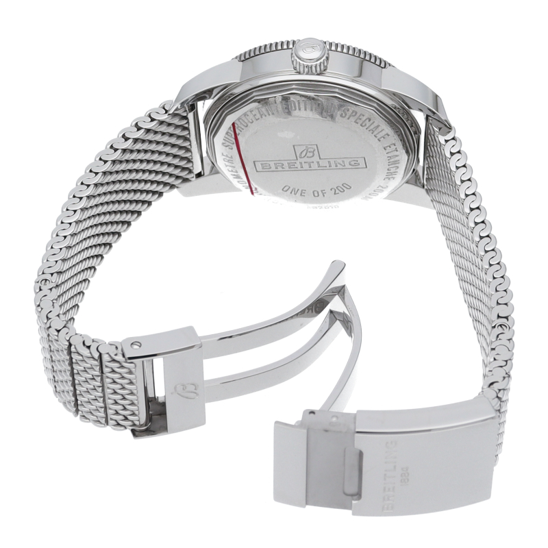 1957年に誕生しブライトリングの海洋分野における先駆者となったダイバーズ・ウォッチが、誕生から50年を経てリメイクされました。ベゼルプレートは耐傷性・耐久性に優れたハイテクセラミックベゼルを初採用し、時分針も前モデルよりも視認性の高い形状のものに変更されました。AB2010/AB20108A1C1A1。