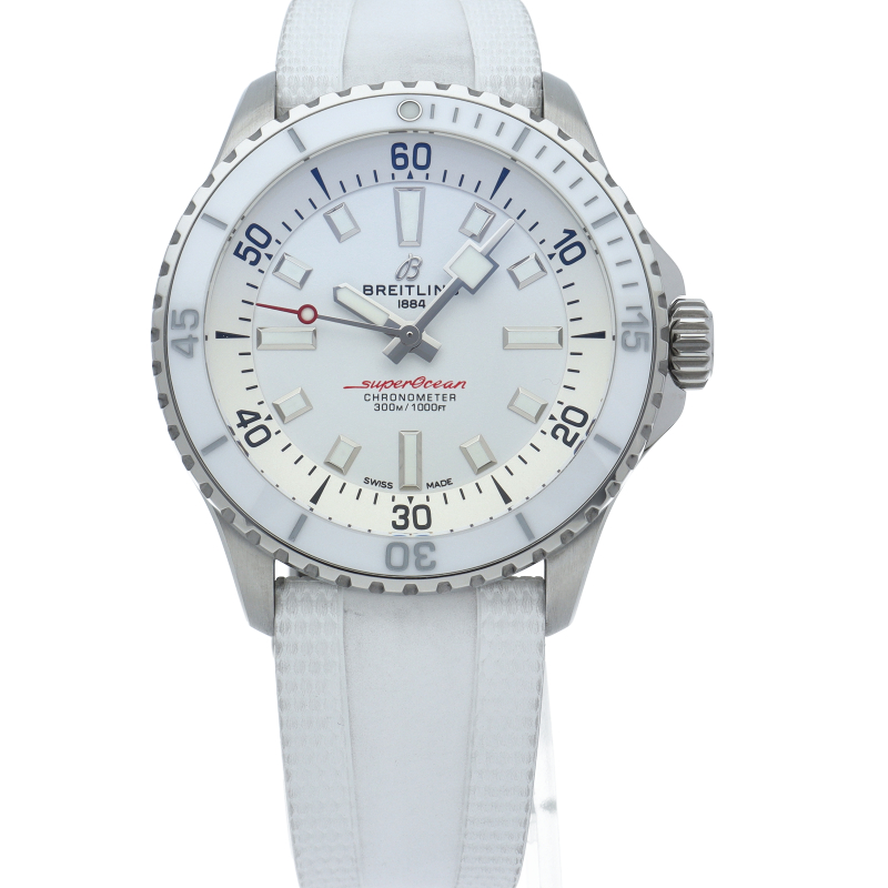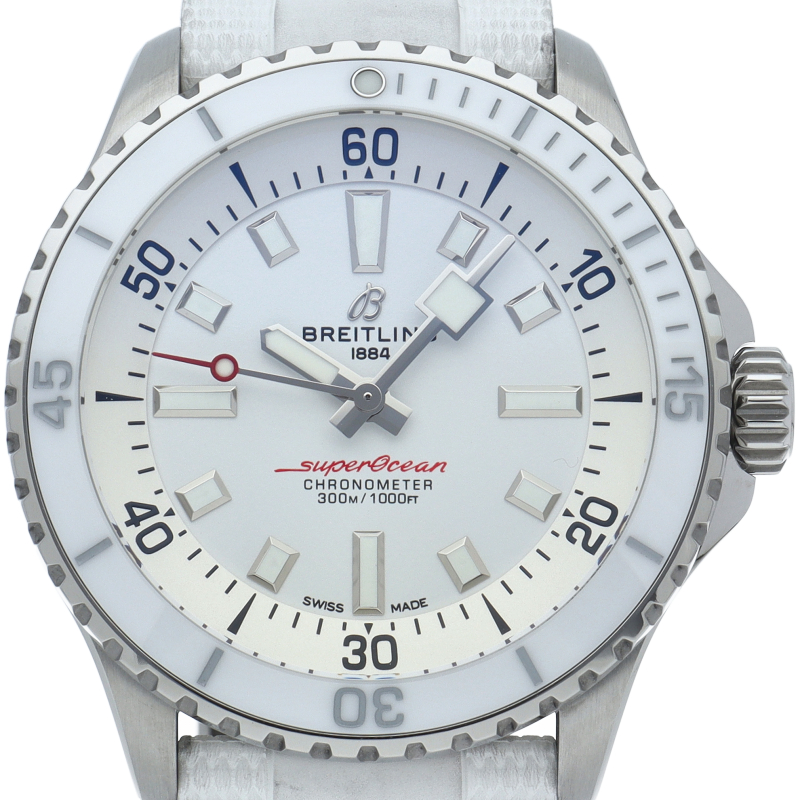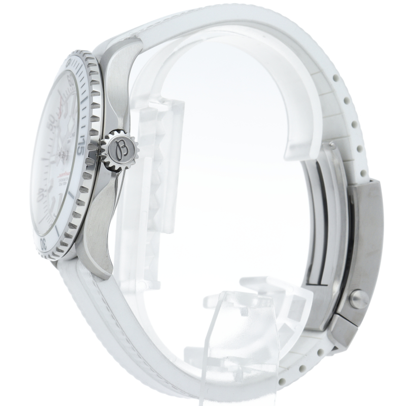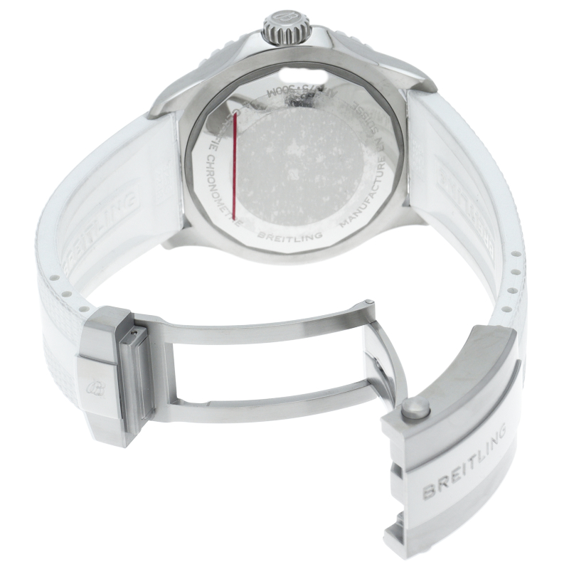夜光性のスーパールミノバでコーティングされた幅広の針とインデックスにより、水中での優れた視認性を実現しました。 300mの防水性能は、ダイバーズウォッチに求められる最低条件の3倍に相当します。 自動巻きブライトリングキャリバー17搭載。A17375/A17375A71A1S1