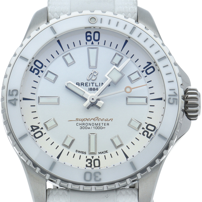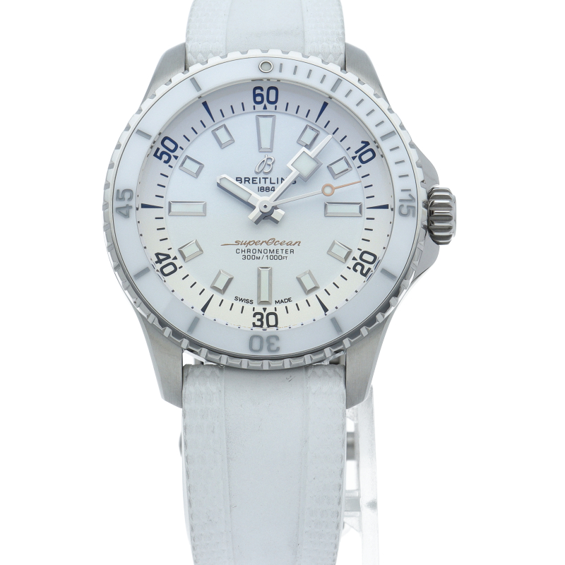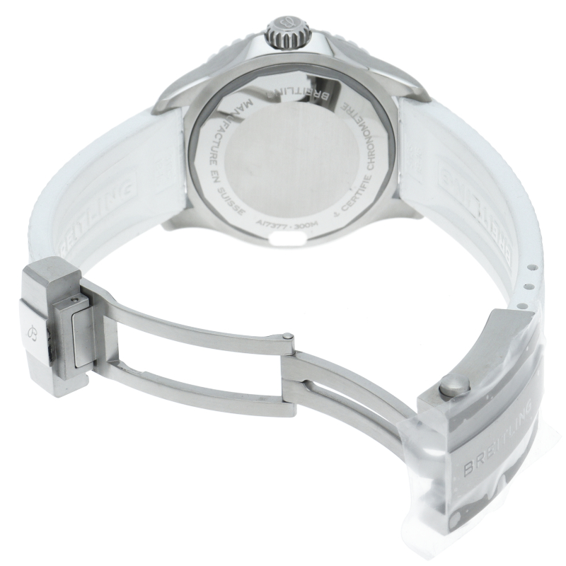 夜光性のスーパールミノバでコーティングされた幅広の針とインデックスにより、水中での優れた視認性を実現しました。 300mの防水性能は、ダイバーズウォッチに求められる最低条件の3倍に相当します。 自動巻きブライトリングキャリバー17搭載。A17377/A17377211A1S1