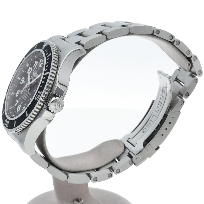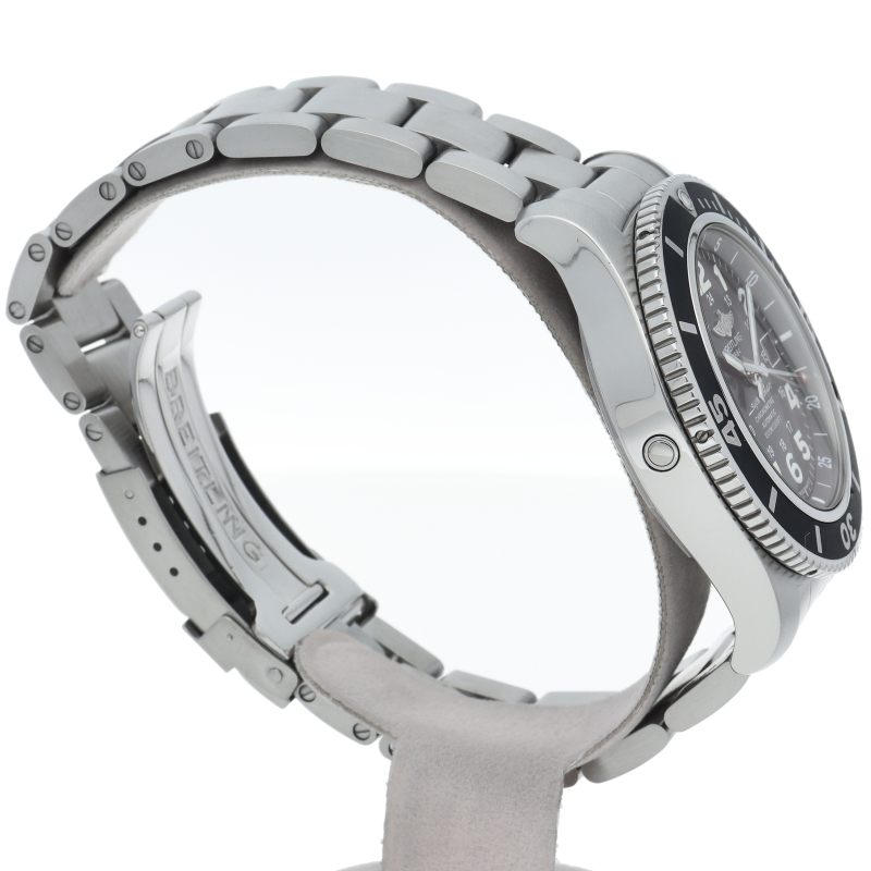 従来のスーパーオーシャン44では、厚みが約16.5mmに対し、新作では約14.5mmと、あえて防水性を下げる事で厚みがスリムになり軽量化を実現。ダイバーズウォッチの中では普段使いにも使用しやすいモデルに進化しました。A17392/A17392D7/BD68