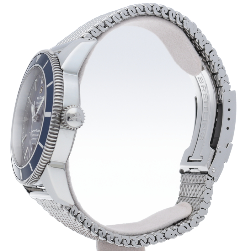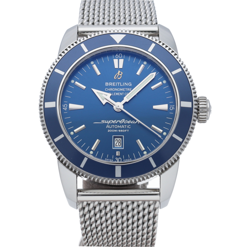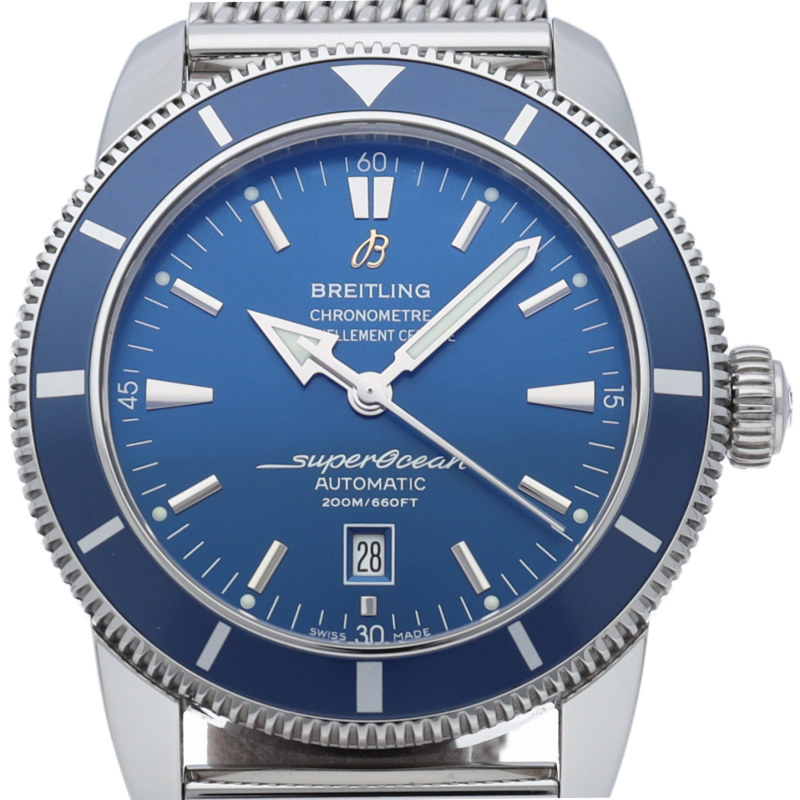 シンプルで美しい、進化を続けるブライトリング伝統のダイバーズ「スーパーオーシャン」。オリジナルモデルを忠実に再現した旧タイプのロゴデザインや独特の針形状、ベゼル12時側の三角形などヴィンテージ感に溢れた「ヘリテージ」シリーズです。スチール製のメッシュベルト、オーシャンクラシックベルトは1950年代のオリジナルデザインを彷彿とさせます。