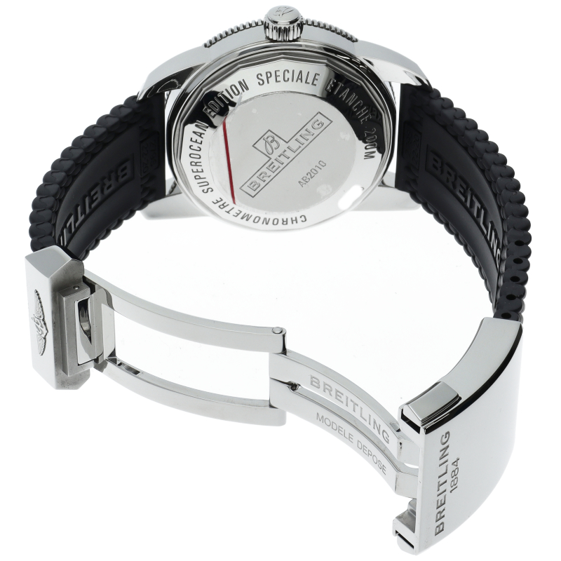 1957年に誕生し、ブライトリングの海洋分野における先駆者となったダイバーズ・ウォッチが、誕生から50年を経てリメイクされました。極めてシンプルでありながら、ブライトリングらしさを感じさせるデザインです。ベゼルプレートは耐傷性・耐久性に優れたハイテクセラミックベゼルを初採用し、時分針も前モデルよりも視認性の高い形状のものに変更されました。AB2010/AB2010121L1S1。