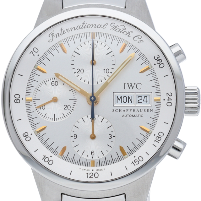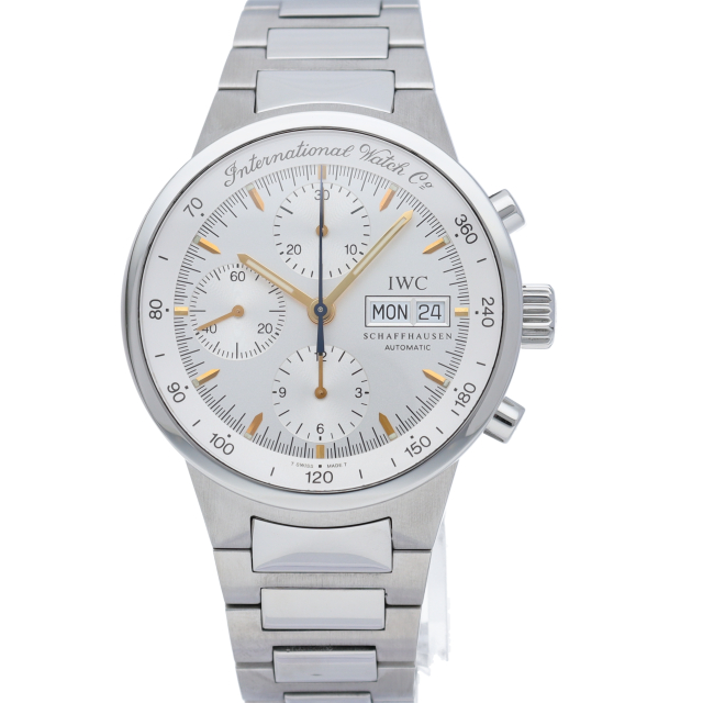 IWCの中でも人気の高いシリーズであった「GSTシリーズ」の中のクロノグラフモデルです。デイデイト表記とクロノグラフが搭載されたモデルでありながら、視認性の高い時計でもあります。