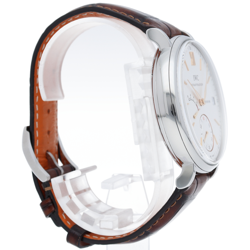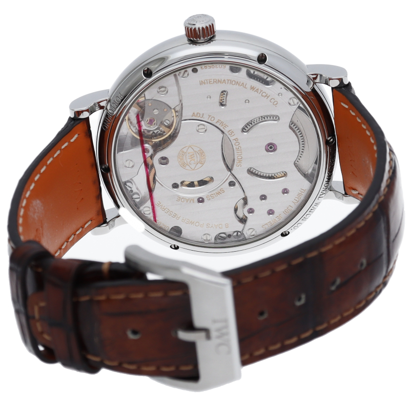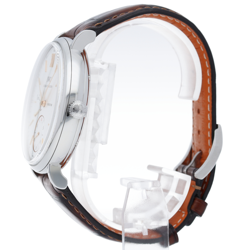 IWCを代表するクラシック・コレクションがポートフィノです。ハンドワインド 8デイズは、ポートフィノコレクションの最上級に位置するモデルです。完全に巻き上げられた場合、8日間巻き上げが不要となる、パワーリザーブが搭載されています。9時位置にインジケーターが搭載されているので、実用に関しても不足はありません。IWC自社製手巻きムーブメントの59210を搭載しています。