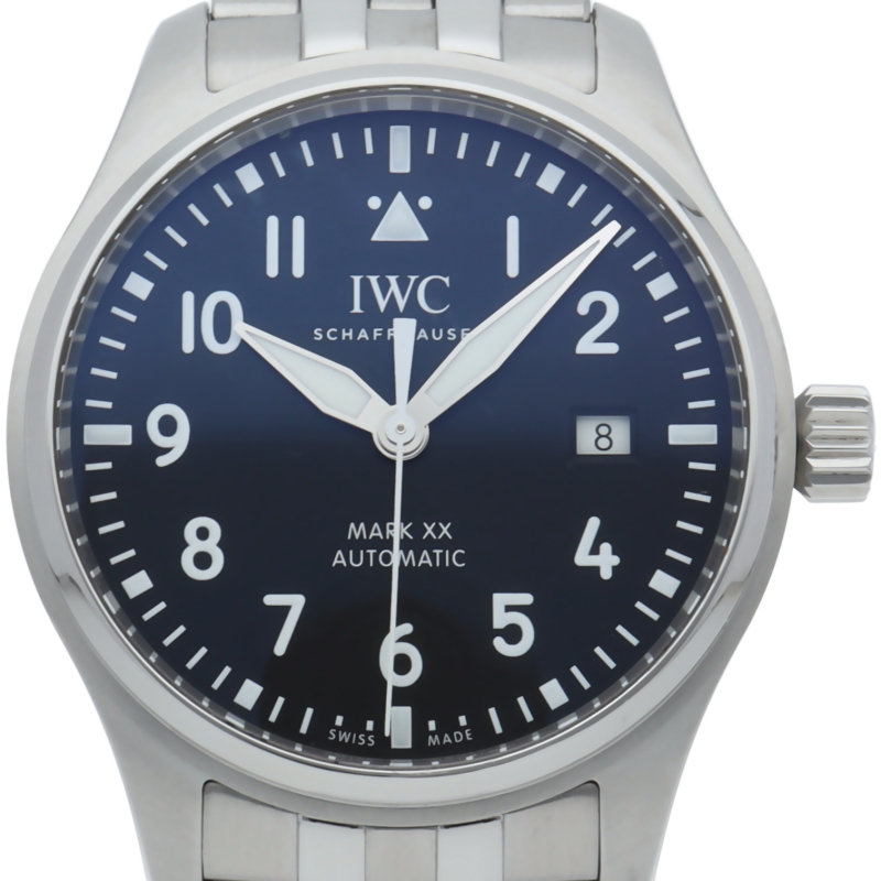 「マーク18」の後継機として、2022年に発表された「マーク20」。基本デザインはそのままに、ムーブメントが「Cal.35111」からIWC自社製ムーブメント「Cal.32111」へと変更され、パワーリザーブも約120時間と大幅に延長されました。視認性に優れたシンプルなデザインにより、あらゆるシーンで活躍する1本です。