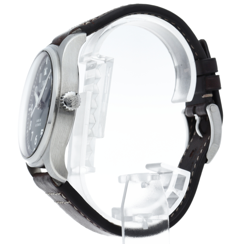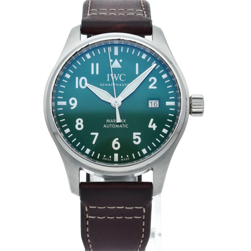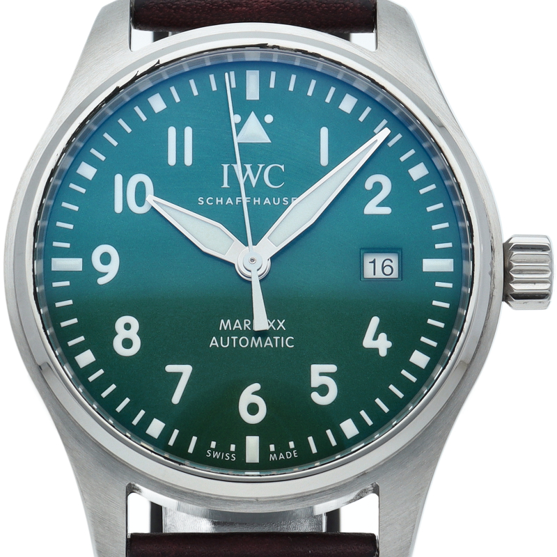 マークXVIIIの後継機として2022年に発表された「マーク20」。40mmのケースサイズ等、基本デザインはそのままに6時位置のロゴが「MARK XX」へ変更されています。搭載ムーブメントが「Cal.35111」からIWC自社製ムーブメント「Cal.32111」へとブラッシュアップされているため、ケース厚が10.8mmと薄くなり、パワーリザーブも120時間と大幅アップ。