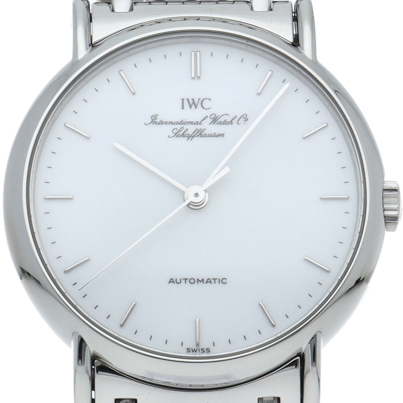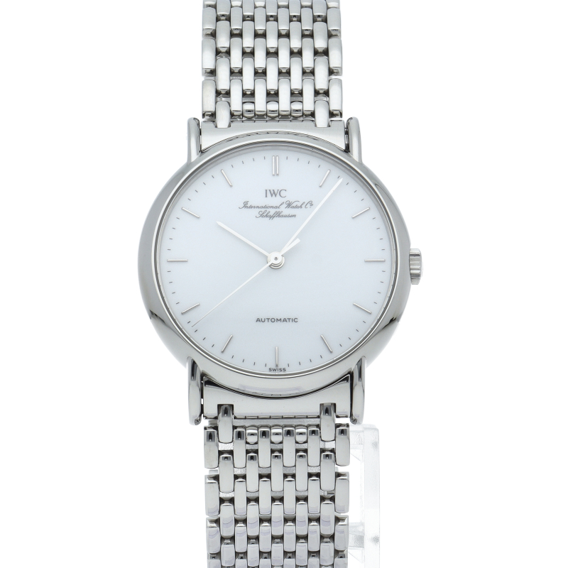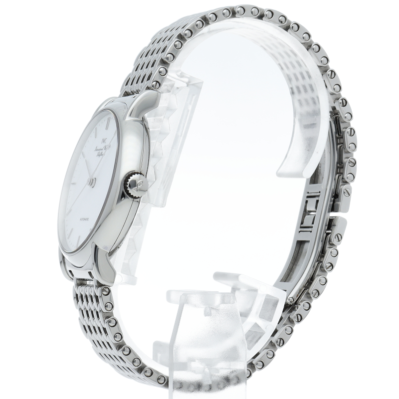 ホワイト文字盤にシルバーのバーインデックス、カレンダー無しという極シンプルなデザインとケース経34mmの絶妙なサイズ感がエレガントな雰囲気を醸し出します。普段使いに最適なステンレスブレスモデル。