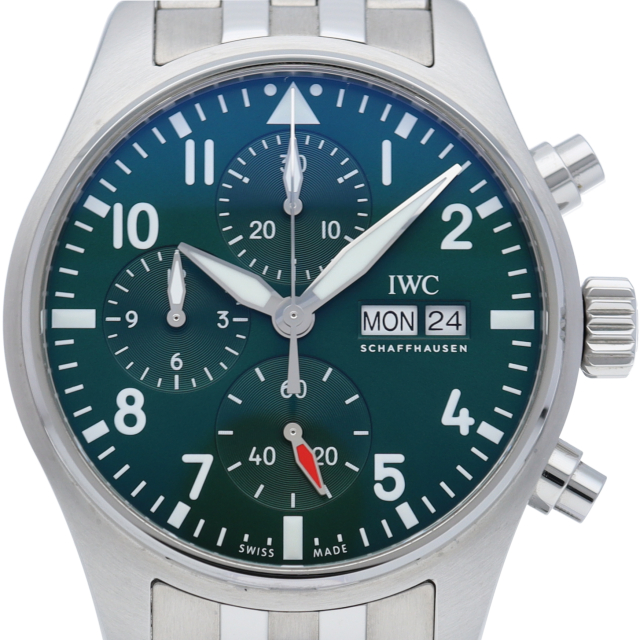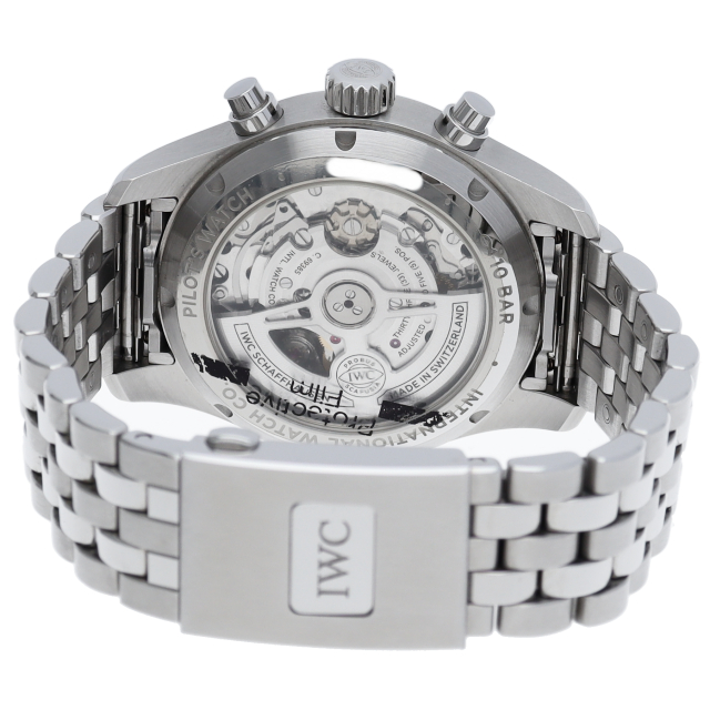 IWC伝統のパイロットウォッチ・クロノグラフです。日付表示は高度計をイメージしたデザインとなり、コクピットを彷彿とさせる演出がなされています。46時間パワーリザーブの自社開発キャリバー69385を搭載。高級クロノの代名詞ともいえる伝統的なコラムホイール式クロノグラフで、ゼンマイを効率的に巻き上げるラチェット式両方向巻き上げシステムを搭載した8振動ムーブメントです。