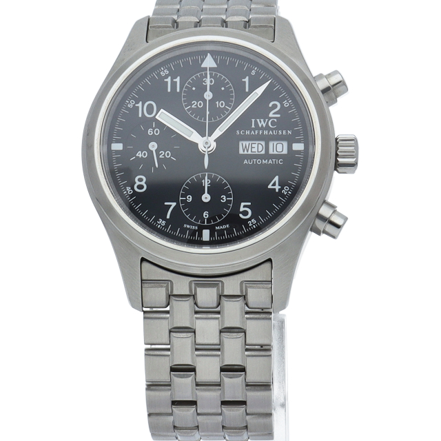 IWCの人気パイロットウォッチ「フリーガー クロノグラフ」。既に生産が終了となりましたが、根強い人気があり、機能性と実用性を兼ね備えた1本。