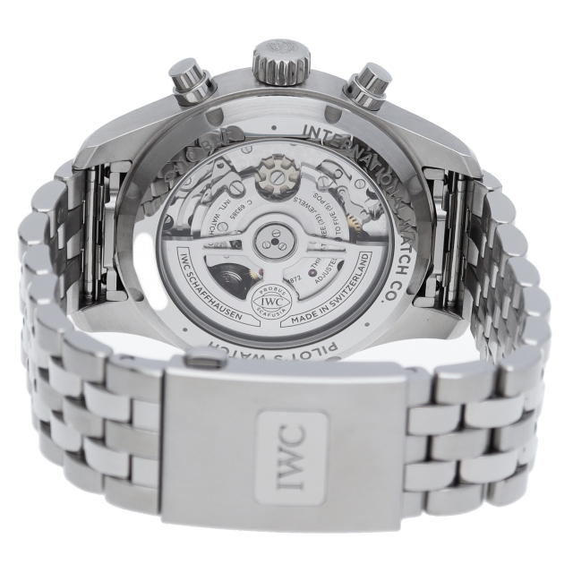 IWC伝統のパイロットウォッチ・クロノグラフです。日付表示は高度計をイメージしたデザインとなり、コクピットを彷彿とさせる演出がなされています。46時間パワーリザーブの自社開発キャリバー69385を搭載。高級クロノの代名詞ともいえる伝統的なコラムホイール式クロノグラフで、ゼンマイを効率的に巻き上げるラチェット式両方向巻き上げシステムを搭載した8振動ムーブメントです。