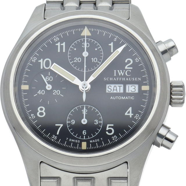 IWCの人気パイロットウォッチ「フリーガー クロノグラフ」。既に生産が終了となりましたが、根強い人気があり、機能性と実用性を兼ね備えた1本。