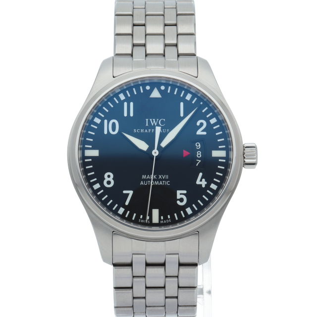 IWC伝統のパイロット・コレクションが「マークXVII」です。41ミリケースに拡大されたケースはIWCらしい無骨なフォルムとなります。日付表示は高度計をイメージしたデザインとなり、コクピットを彷彿とさせる演出がなされています。耐磁性軟鉄製インナーケースに保護された、42時間のパワーリザーブを備える、自動巻きムーブメントは30110を搭載しています。