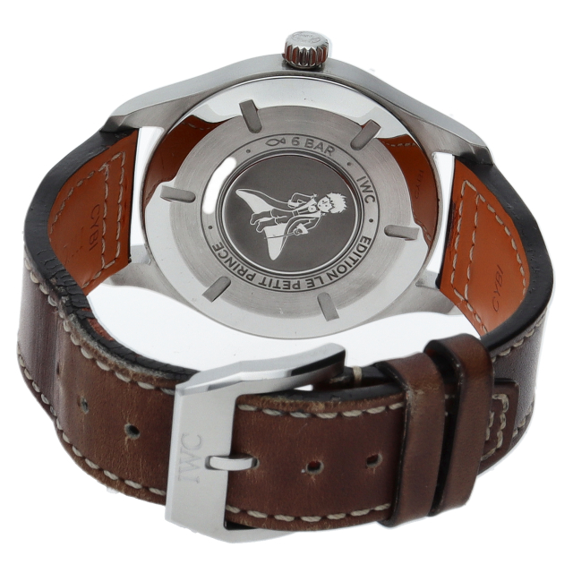 パイロットウォッチ マークXVIII プティ・プランス」はサンテグジュペリの代表作の「星の王子さま」のエングレービングを裏蓋に施しています。耐磁性インナーケースでコックピット内の磁気に強いだけでなく防水性能も6気圧とパイロットウォッチとして充分な性能を発揮します。