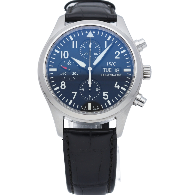 IWCの人気ウォッチ「フリーガークロノ」の後継機となるパイロットウォッチ。2016年に発表されたこのモデルは、日付が3日表示から、一日のみの仕様に変更されており、ストラップ素材もより扱いやすい素材へと変更されました。機能性・デザイン性共に優れた迫力ある1本です。