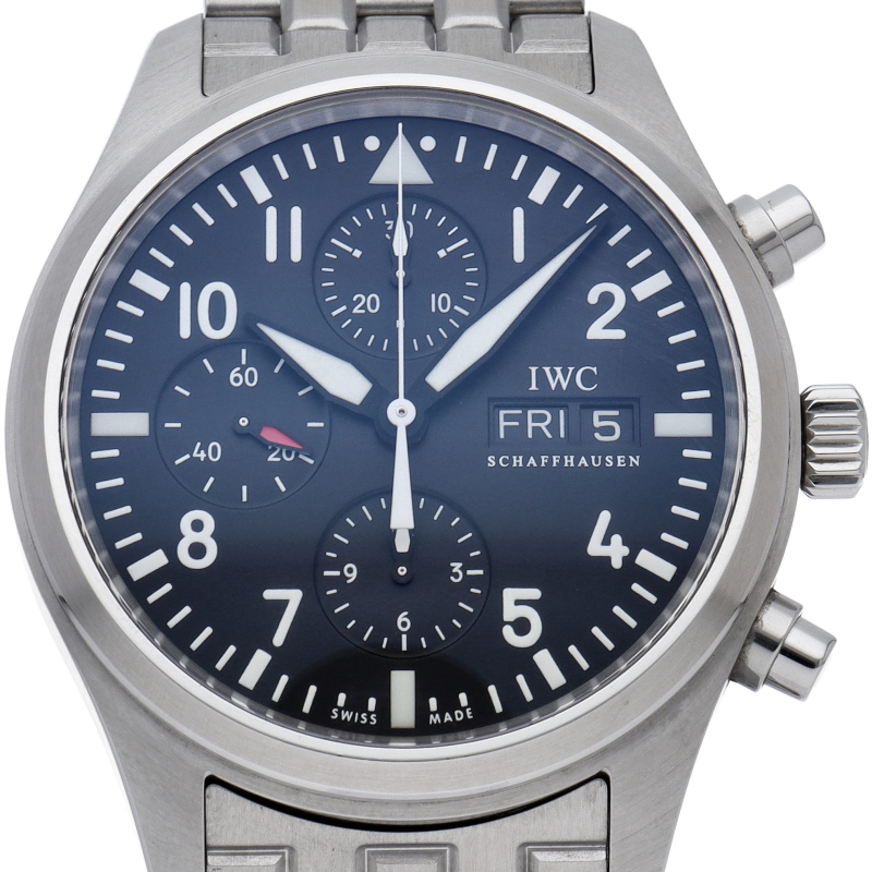 IWCの人気ウォッチ「フリーガークロノ」の後継機となるパイロットウォッチ。ケースサイズは大型化され機能性・デザイン性共に優れた迫力ある1本。