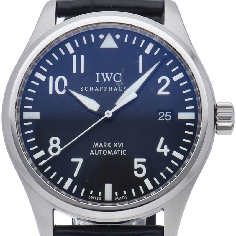 1930年代のマークIVから連なるミリタリーウォッチの流れを現代に踏襲する「マーク16」。耐磁構造のケース等、パイロットウォッチシリーズならではの機能性はそのままに、サイズは現代風にボリュームアップされています。