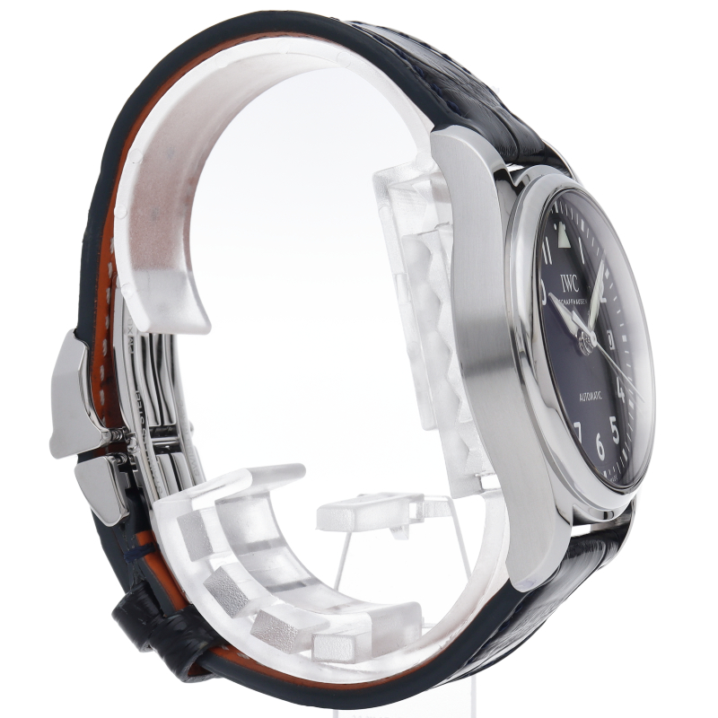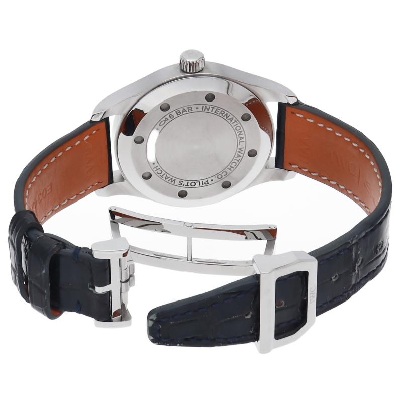 現行モデルで最小の36mmケースの「パイロットウォッチ・オートマチック36」時・分・秒の他にはデイト表示機能のみとシンプルなデザインとなっています。小振りなケースサイズではありますが、磁気に触れる機会の多いパイロットの為に耐磁性軟鉄インナーケースでムーブメントを保護し、パイロットウォッチとして充分な6気圧の防水性能も保持しています。
