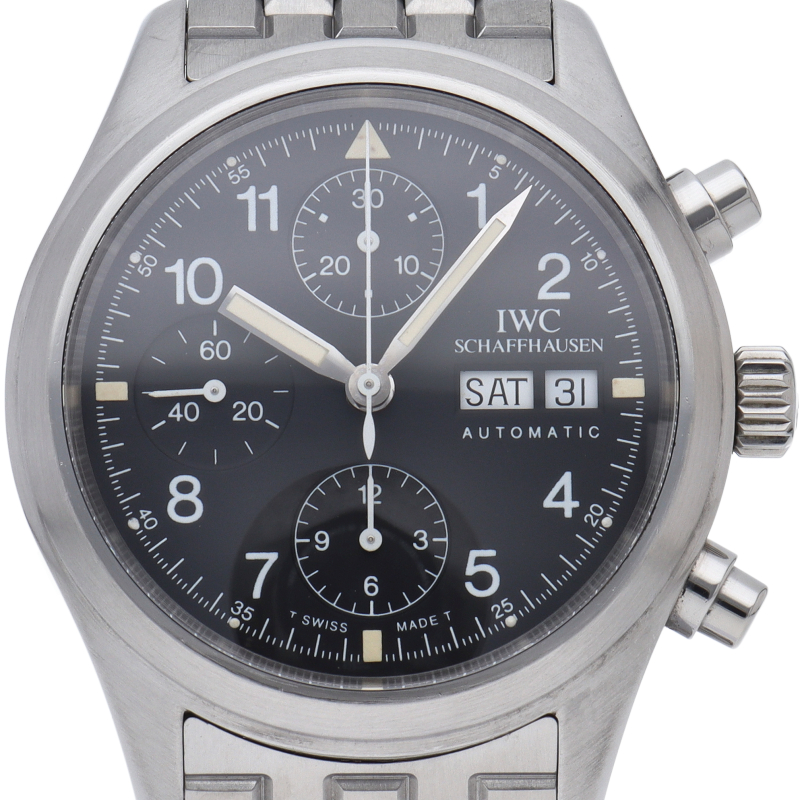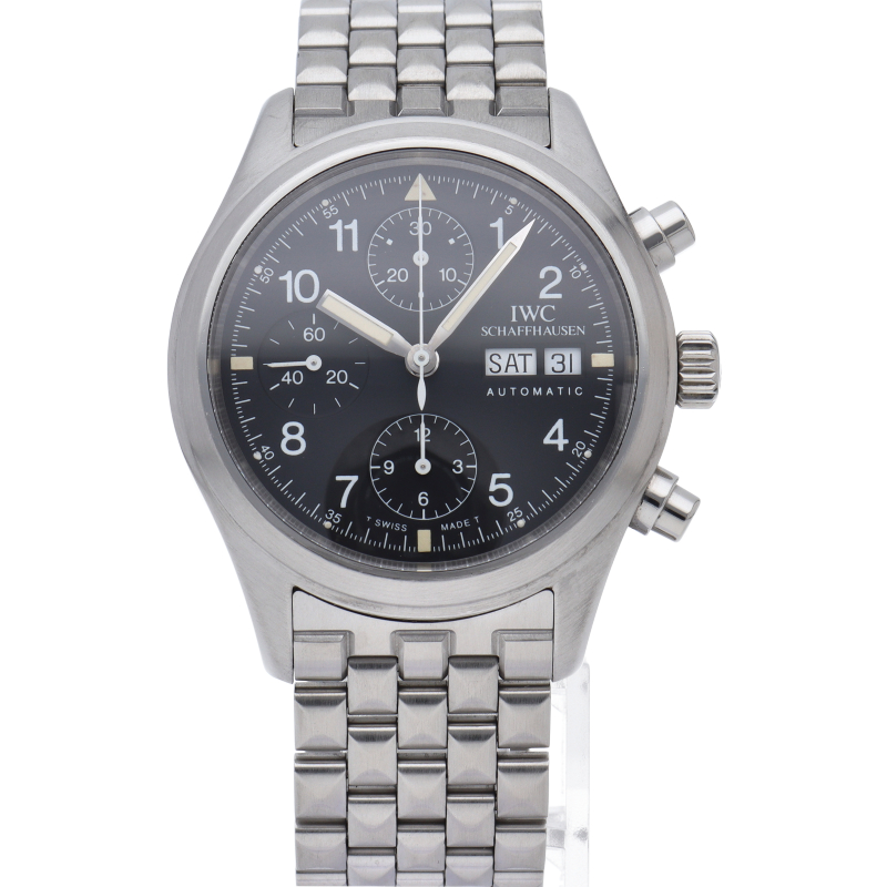 IWCの人気パイロットウォッチ「フリーガー クロノグラフ」。このモデルは既に生産が終了となりましたが、根強い人気があり、機能性と実用性を兼ね備えた1本。