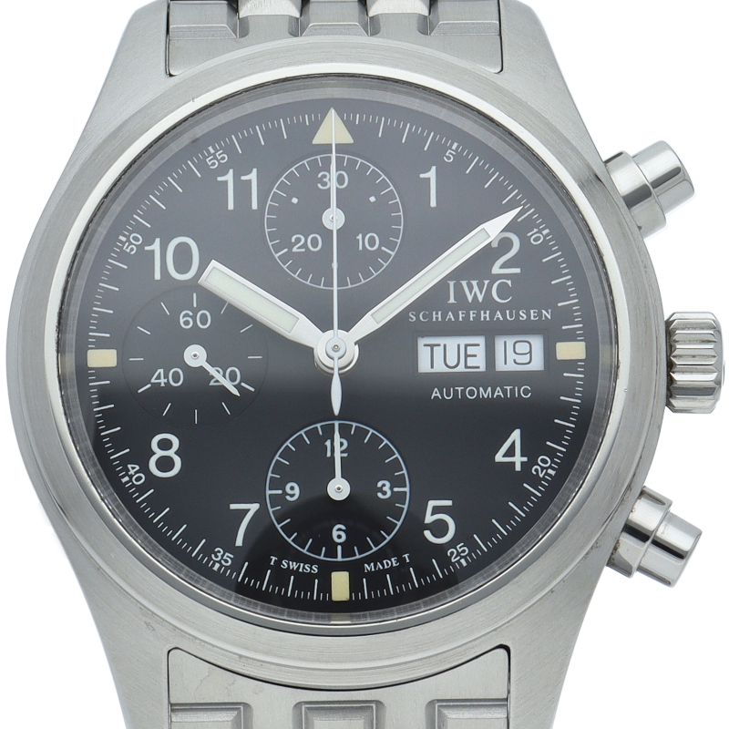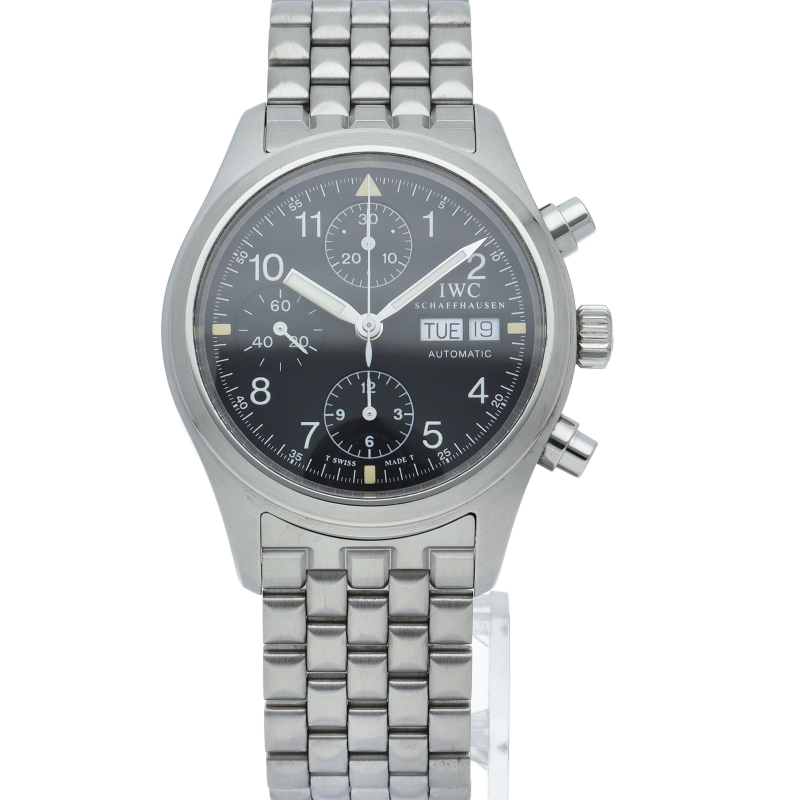 IWCの人気パイロットウォッチ「フリーガー クロノグラフ」。このモデルは既に生産が終了となりましたが、根強い人気があり、機能性と実用性を兼ね備えた1本。