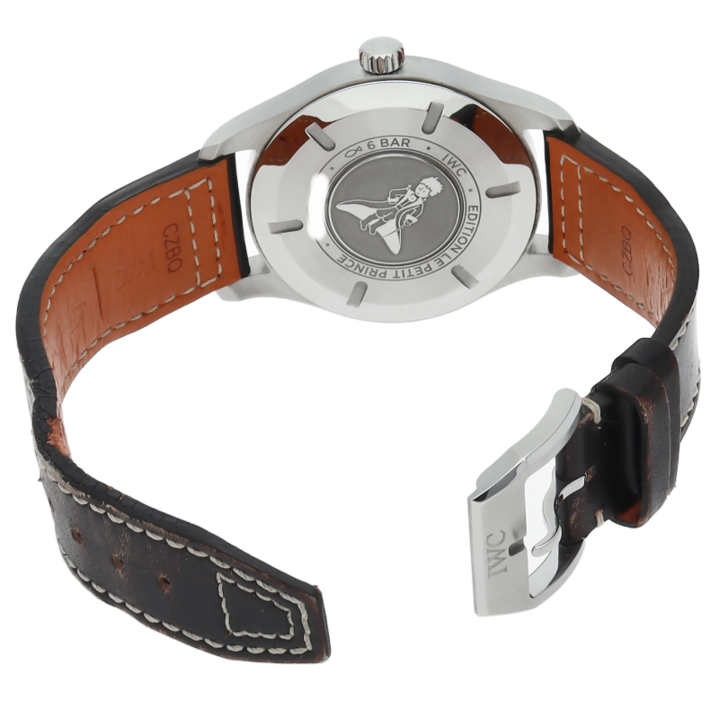 パイロットウォッチ マークXVIII プティ・プランス」はサンテグジュペリの代表作の「星の王子さま」のエングレービングを裏蓋に施しています。耐磁性インナーケースでコックピット内の磁気に強いだけでなく防水性能も6気圧とパイロットウォッチとして充分な性能を発揮します。